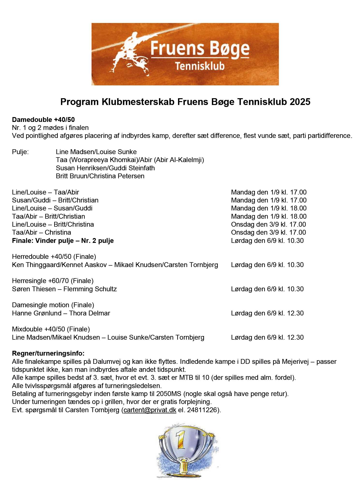 Program Klubmesterskab Fruens Bøge Tennisklub 2025
