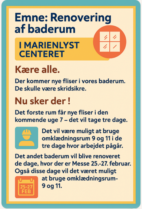 Nu bliver baderum i Marienlyst Centret renoveret.